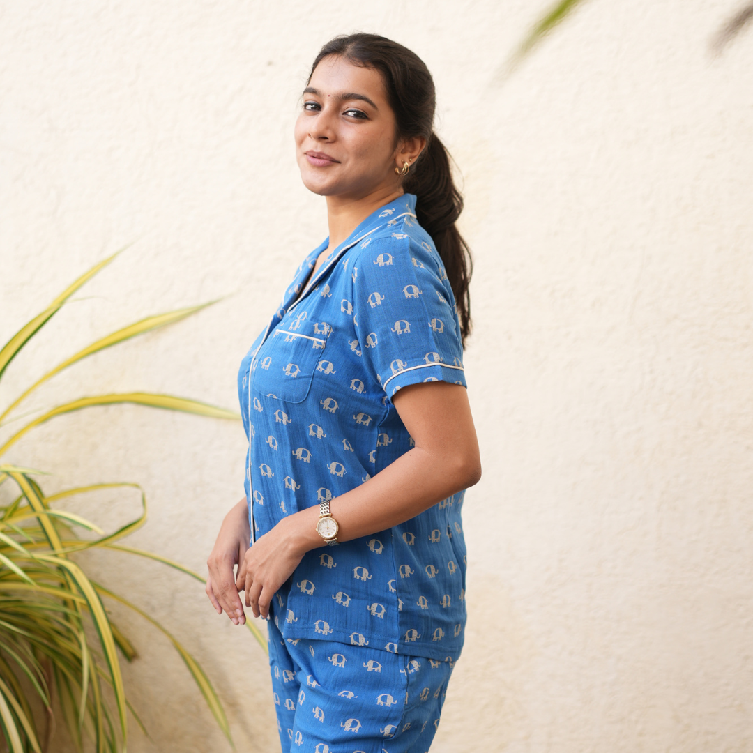 BLUE ELEPRINT MUSLIN PYJAMAS